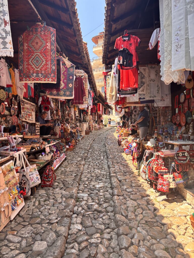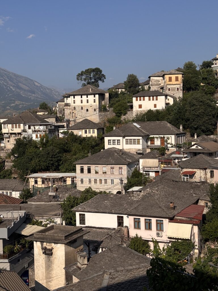 I spent a couple of days in Gjirokastรซr, and it felt like walking into a storybook. The town is known as the โCity of Stoneโ because many of the houses have gray stone roofs. The cobblestone streets are narrow and steep, and walking through them feels like stepping back in time.