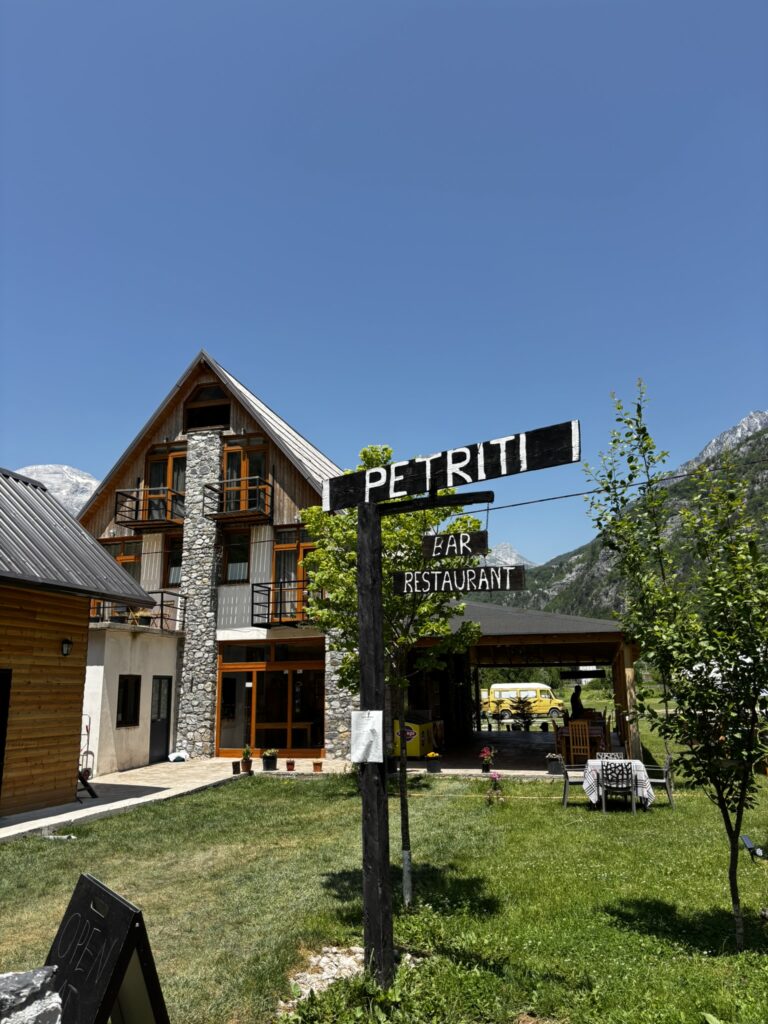 The rooms are intimate in size but cozy and thoughtfully done, and at under $70 per night, itโs an incredible value for the setting. If youโd rather stay closer to the village center (especially if youโre not renting a car), Gurra Family Guesthouse is a wonderful choice. Itโs within walking distance to major trailheads and landmarks, making it easy to explore on foot. Guests love the warm family hospitality, hearty traditional Albanian dinners, and relaxed communal atmosphere after long hiking days.