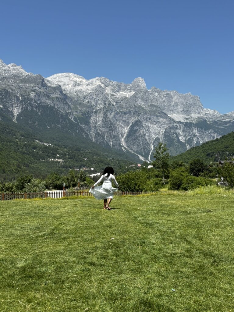 Visiting the little stone church in Theth feels like stepping into The Sound of Music . The iconic Kisha e Thethit sits in an open meadow with lots of wildflowers. It was built in the late 19th century, with simple whitewashed walls and a wooden bell tower. What I loved most is how peaceful it feels. There weren’t a lot of crowds or noise, just mountain air and cows mooing through the valley. Itโs an easy, flat walk from the village center, making it accessible even if youโre not up for a long hike. Whether youโre Christian or not, itโs one of those places that makes you pause, breathe deeper, and fully take in the magic of Theth.