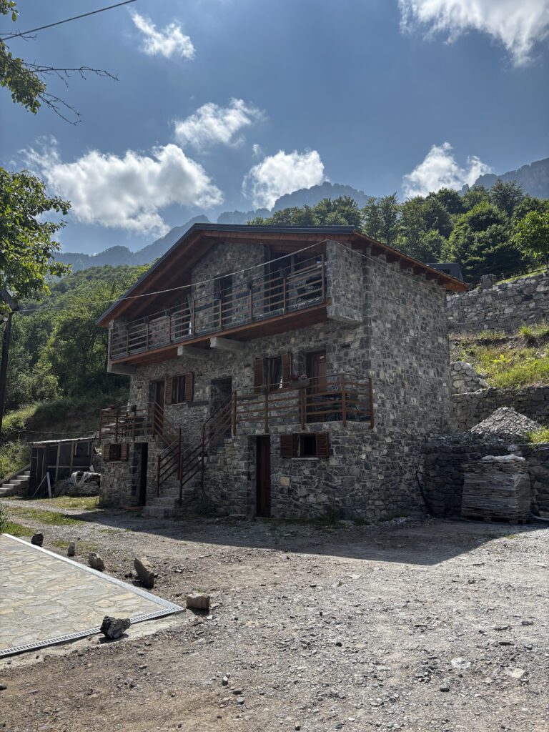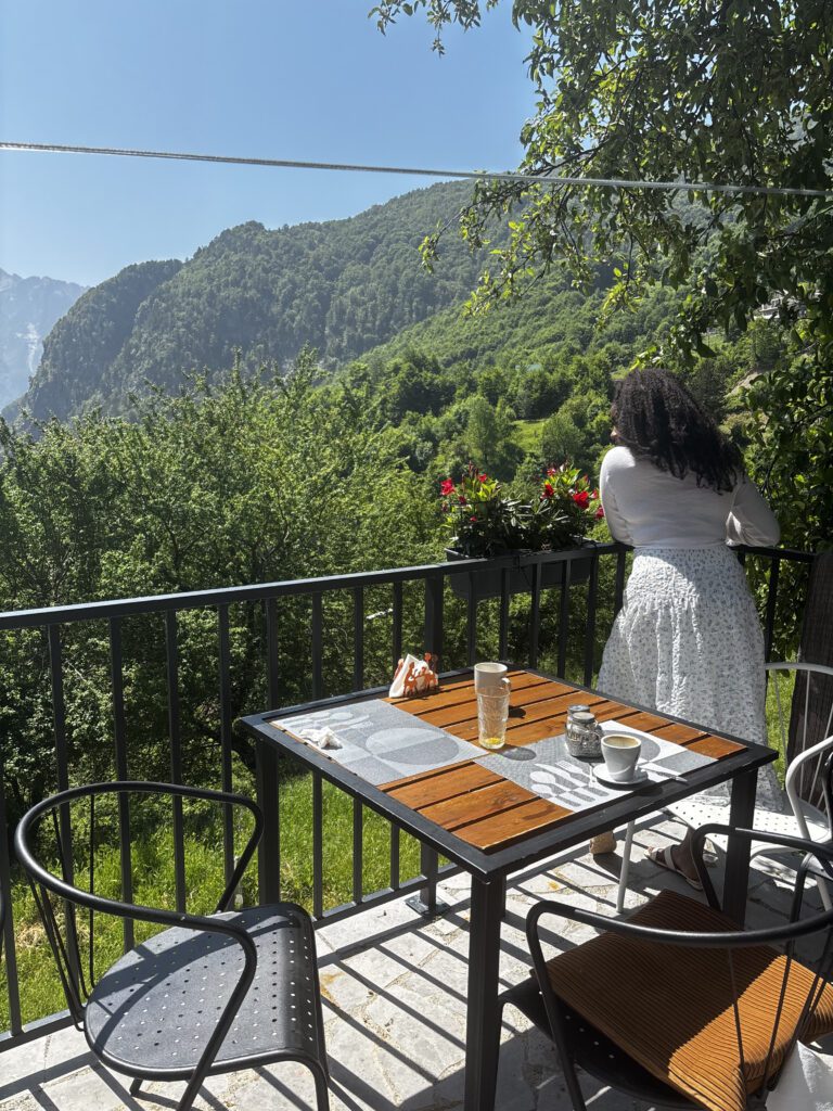 When it comes to where to stay, Villa Davisol is a beautiful option if you have a car. Itโs tucked higher up in the mountains, so the drive is worth it for the sweeping views over the Theth Alps. Mornings here feel magicalโthink an incredible homemade breakfast with fresh bread, local cheeses, eggs, and mountain honey, all enjoyed while overlooking the peaks.